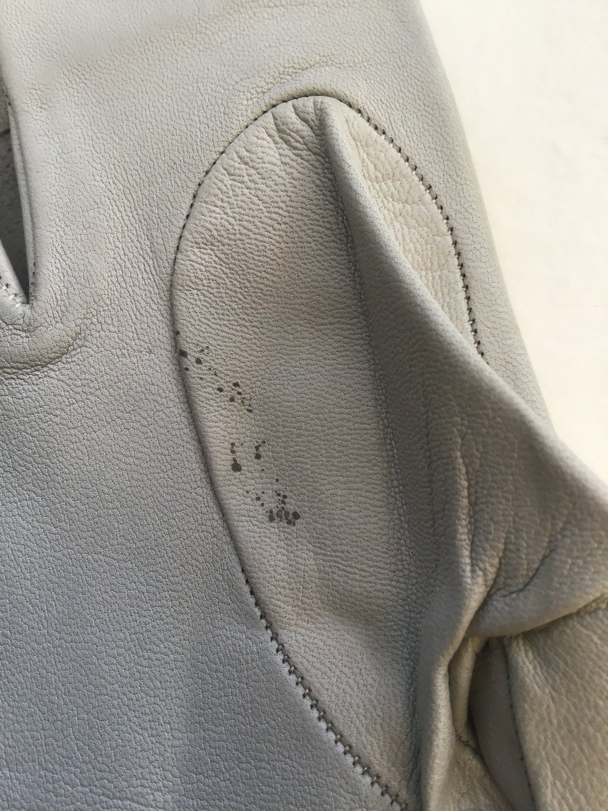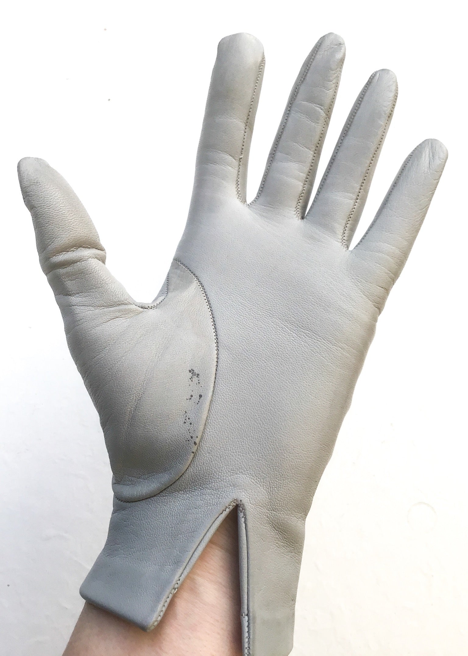 Deadstock, butter soft, they smell gorgeous soft leather, dove grey short length gloves.