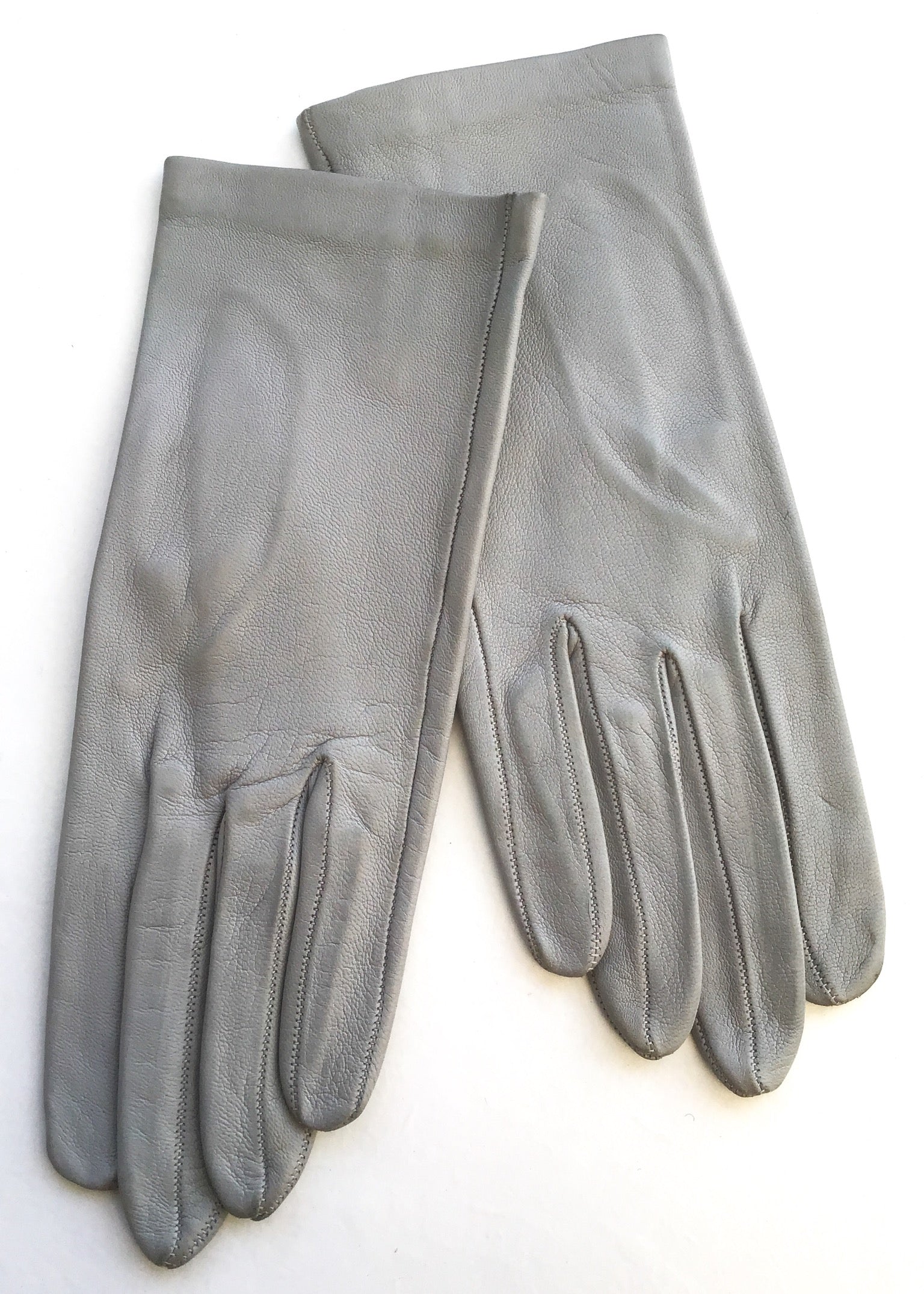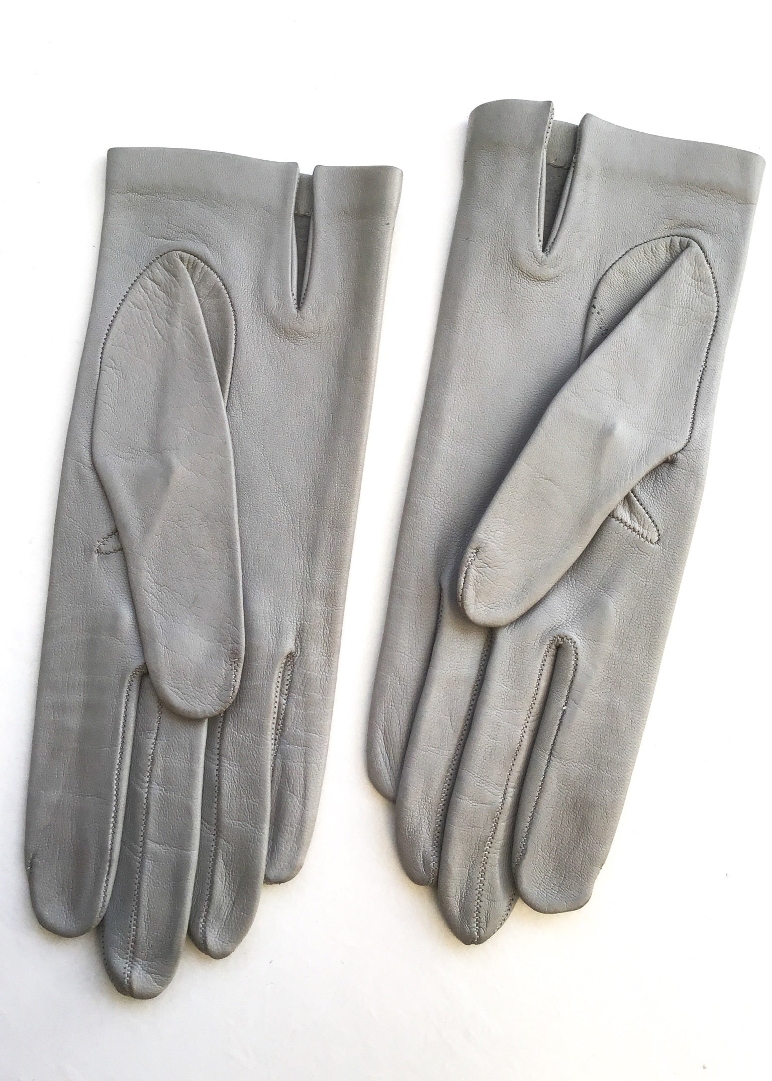 1960s Vintage Dove Grey Leather Gloves • Wrist Length Gloves • Size 7