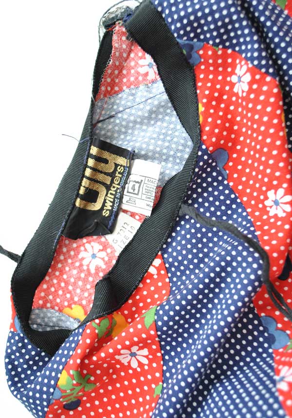 • Vintage 70s blue and red ditsy floral