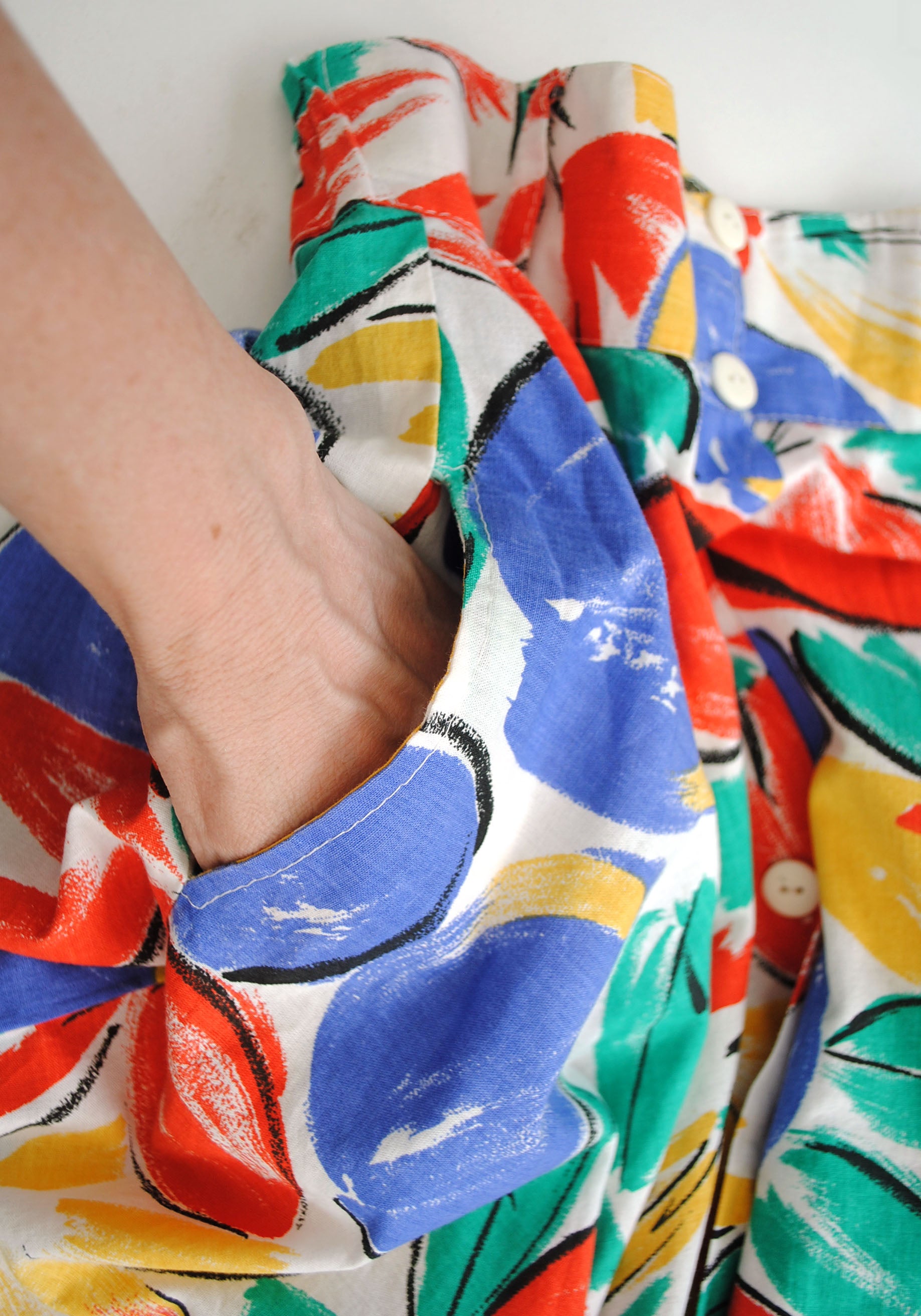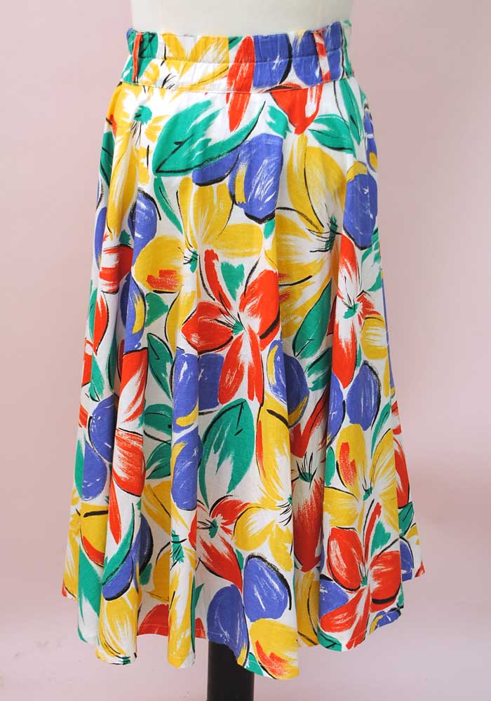 1980s Vintage Colourful Print Full Circle Skirt with Pockets