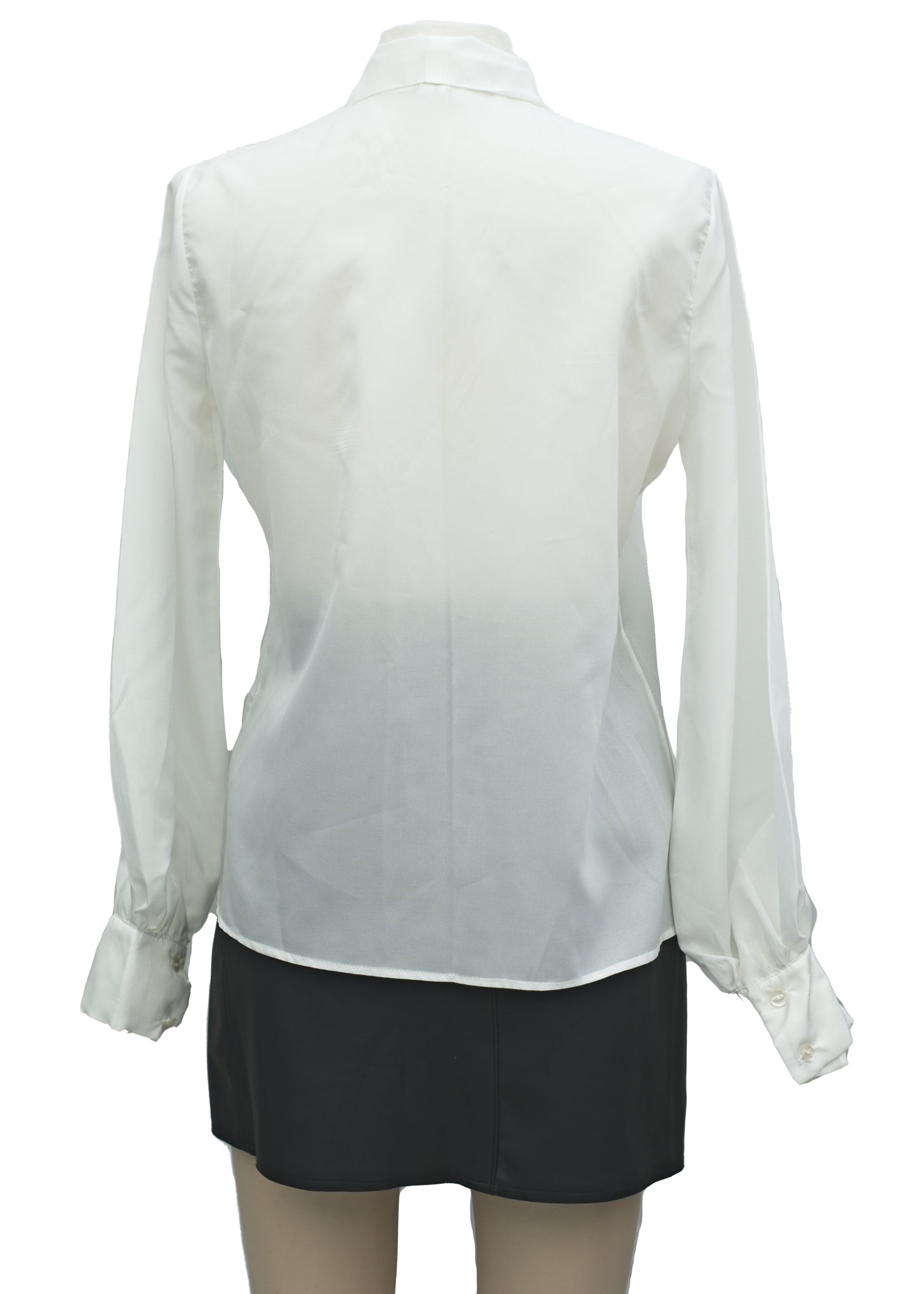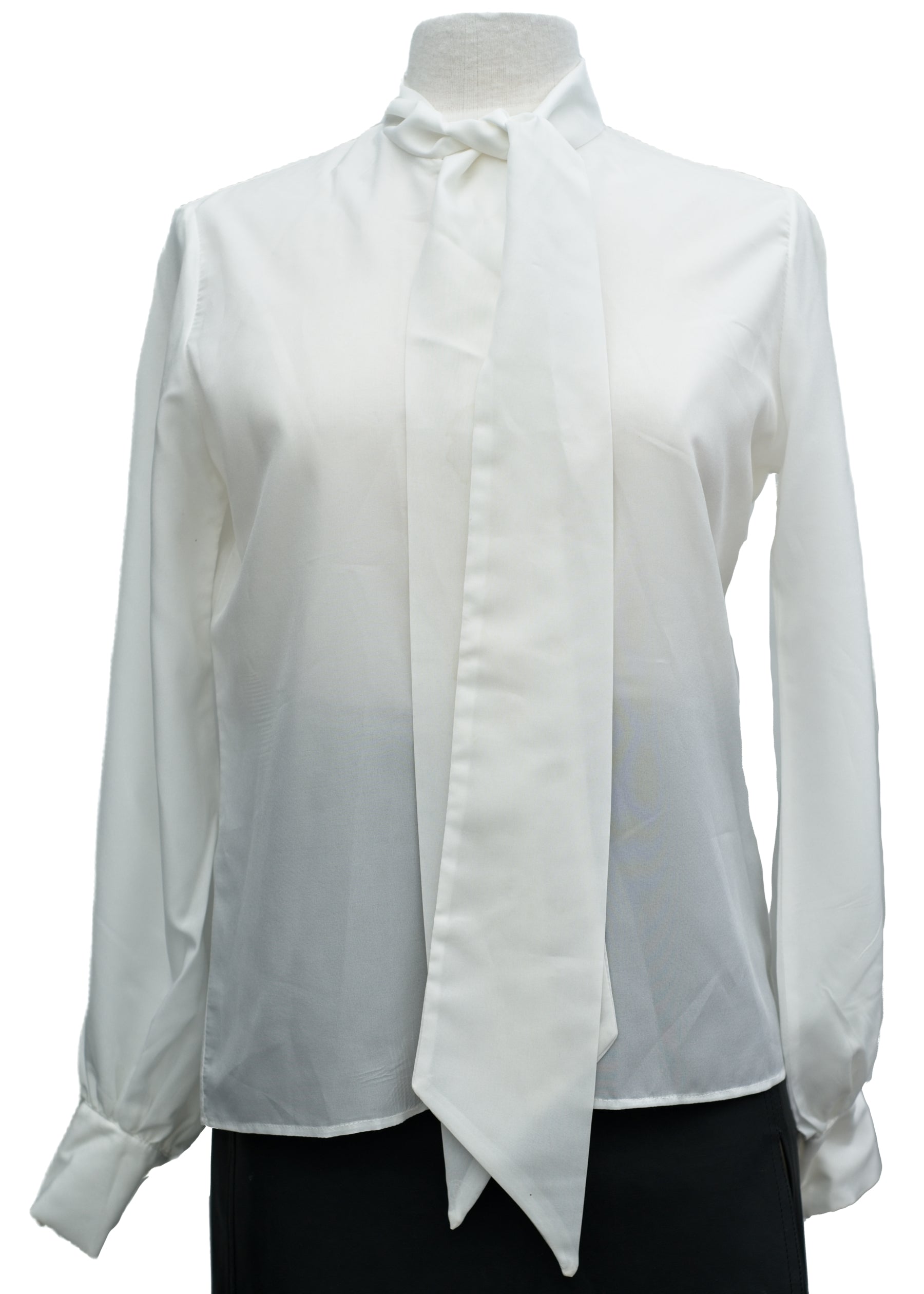 1980s Vintage White Pussy-Bow-Tie Neck Secretary Blouse