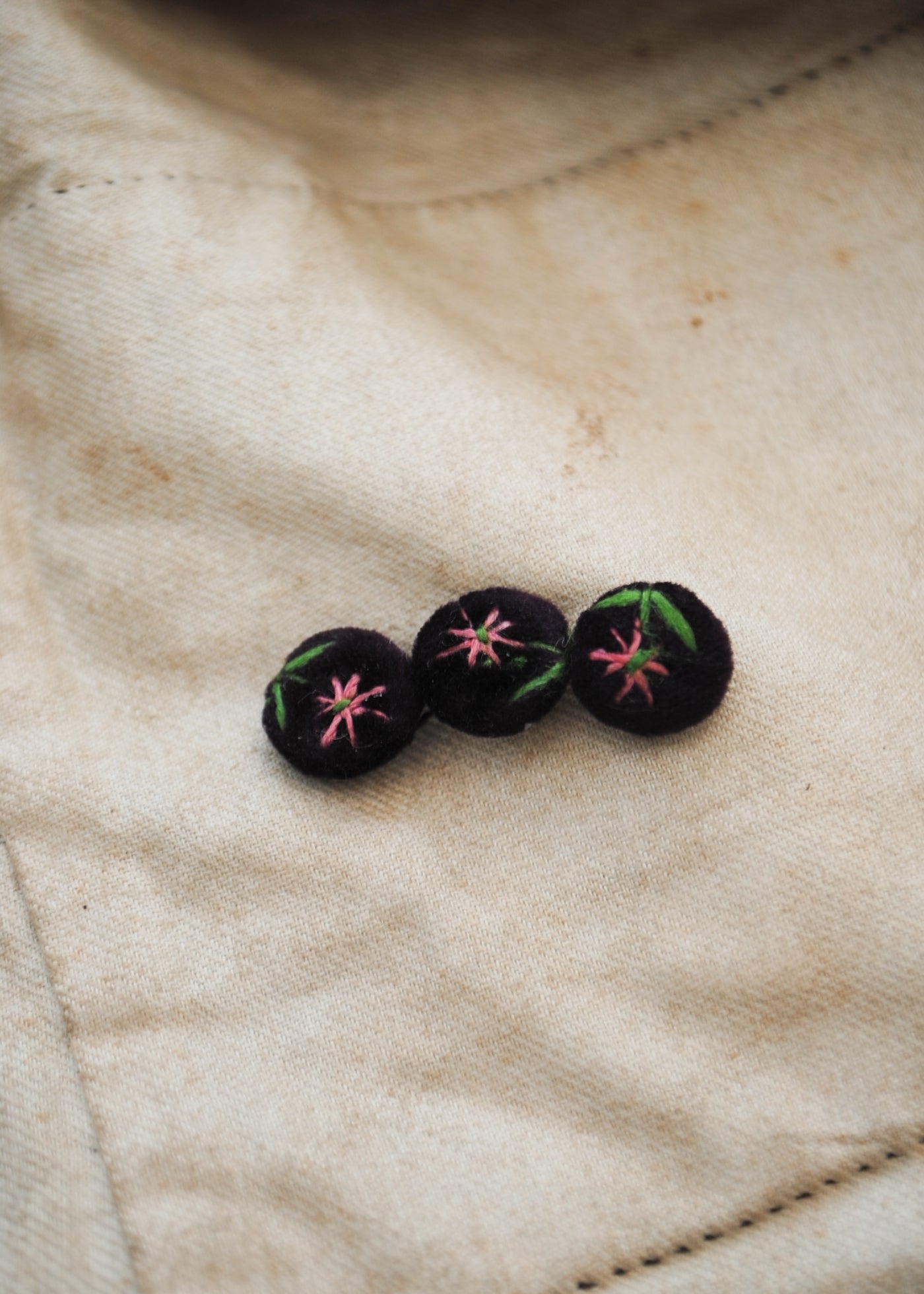 Incredibly gorgeous genuine antique Regency velvet waistcoat in a deep aubergine plum velvet with colourful floral embroidered details around the shawl collar, down the front and edging and along the pockets. The buttons also have embroidered flowers on them and there are 3 spare buttons sewn into the white cotton lining. The style is typical Regency with high collar and shawl lapels with sloping shoulders which you can see more on the flat lay image.