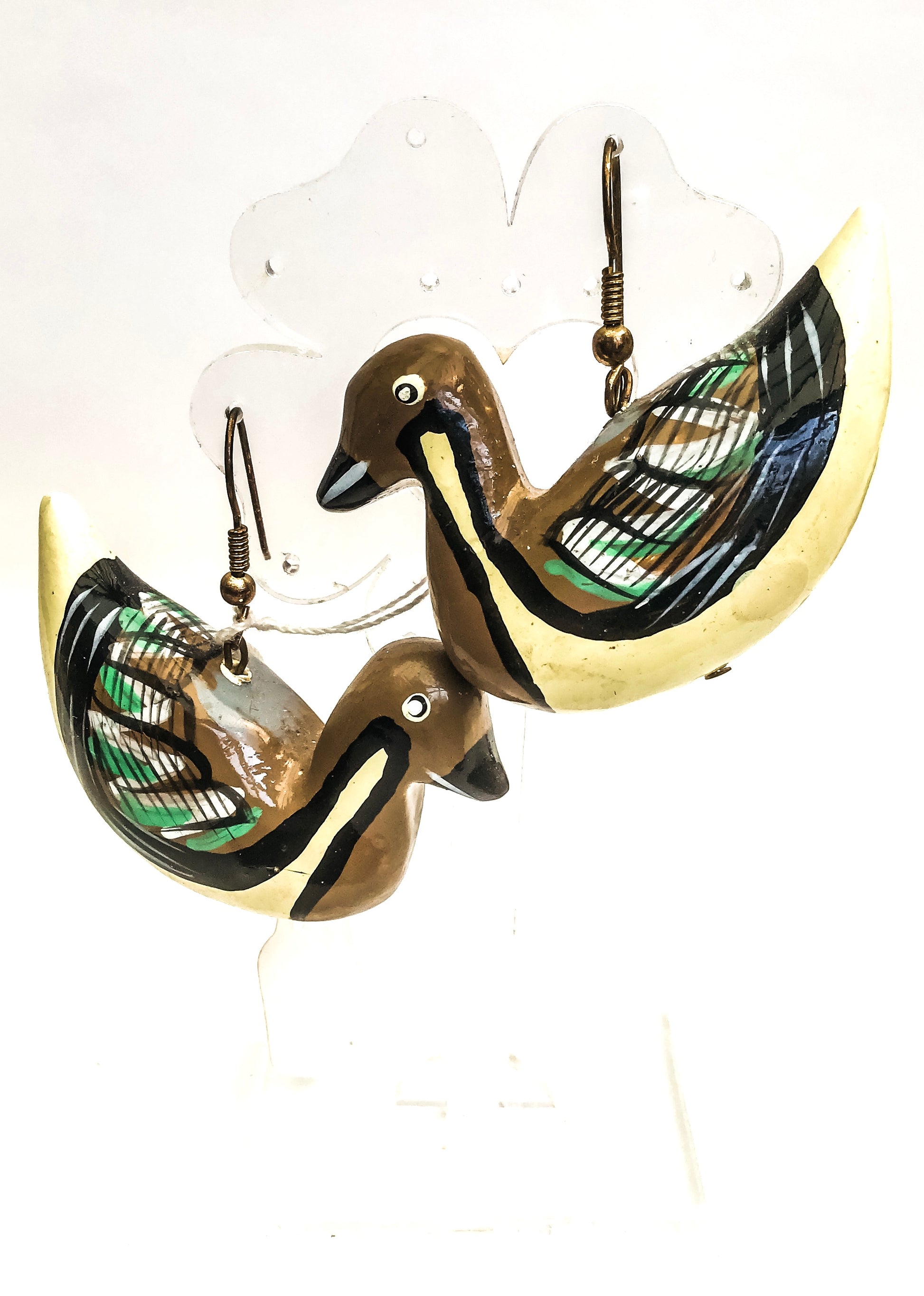 Fun novelty paper mache, hand painted ducks,  dangle earrings from the 1980s.