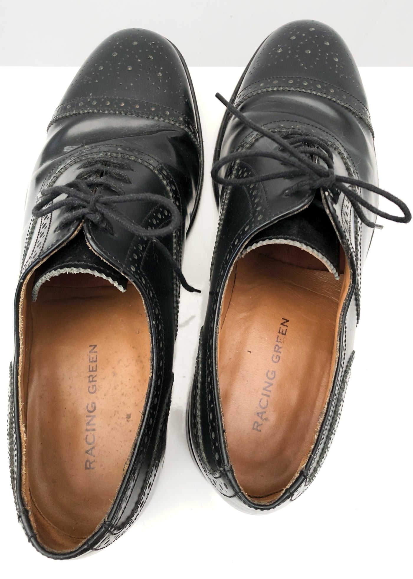 A lovely preloved pair of men's black brogue shoe by Racing Green. Size 8, leather uppers, sole and lining.