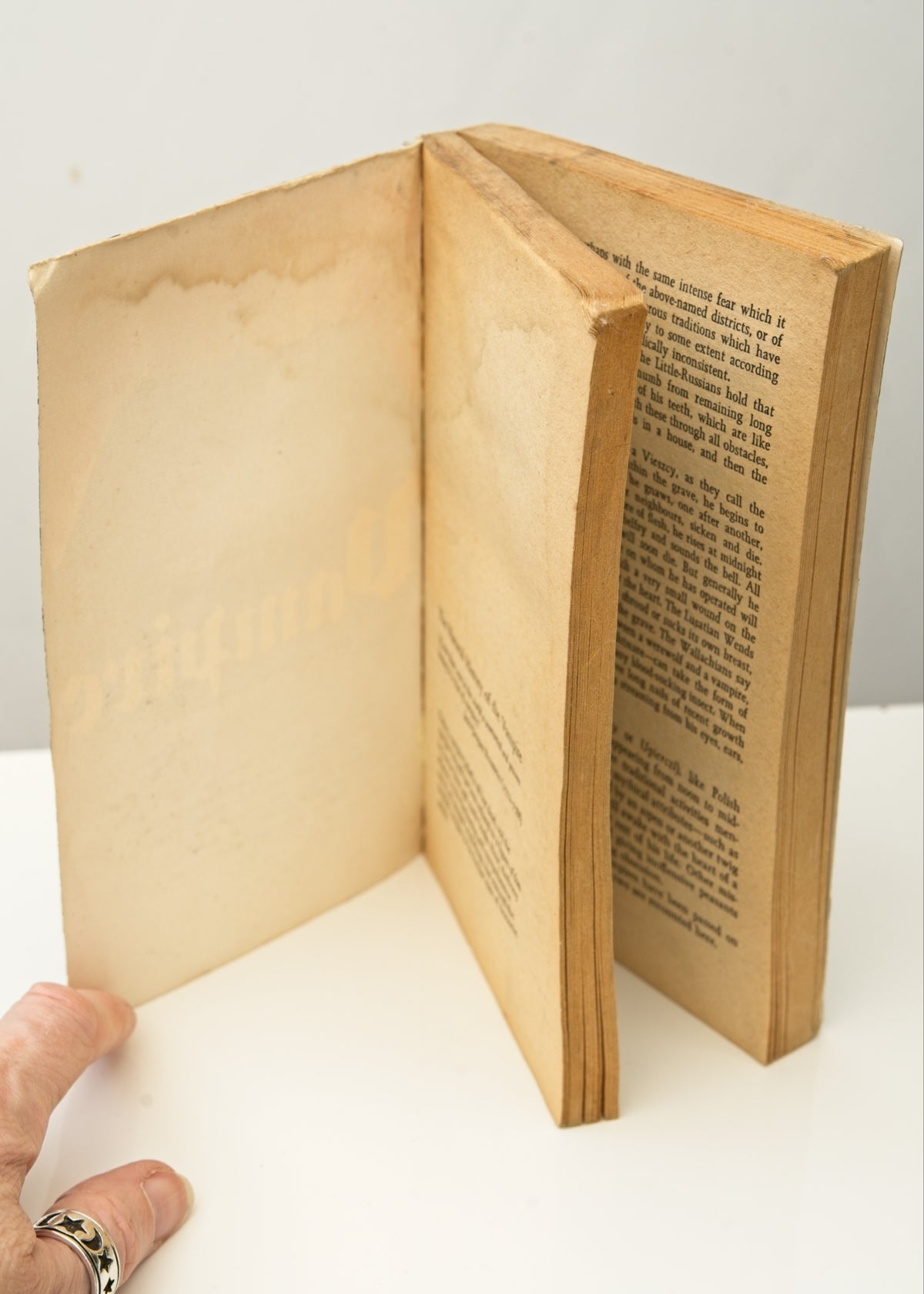 - In fair condition, with some general bumps, creasing, yellowed pages and scuffs. It also has watermarking on the inner cover and upper pages see pics.
