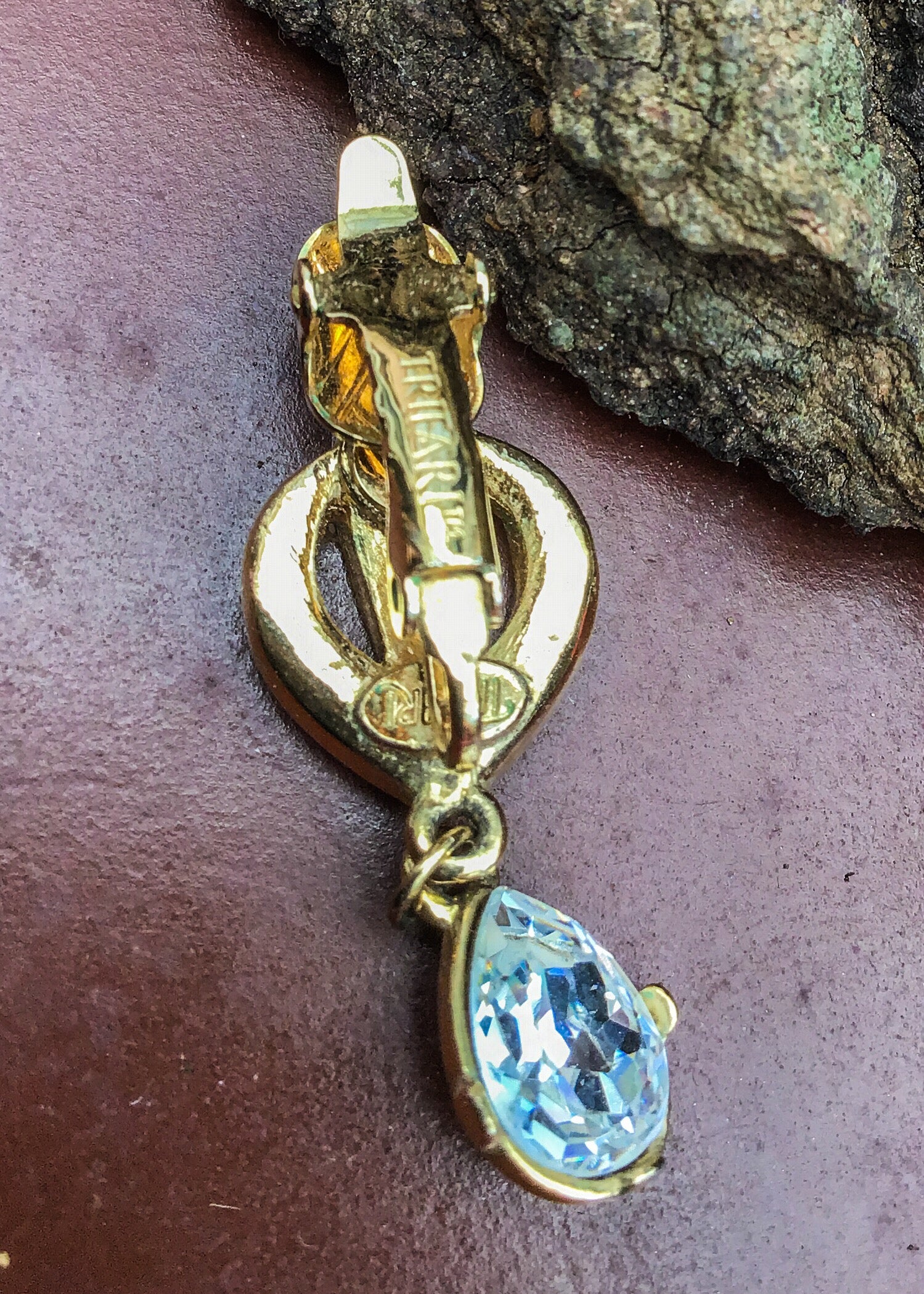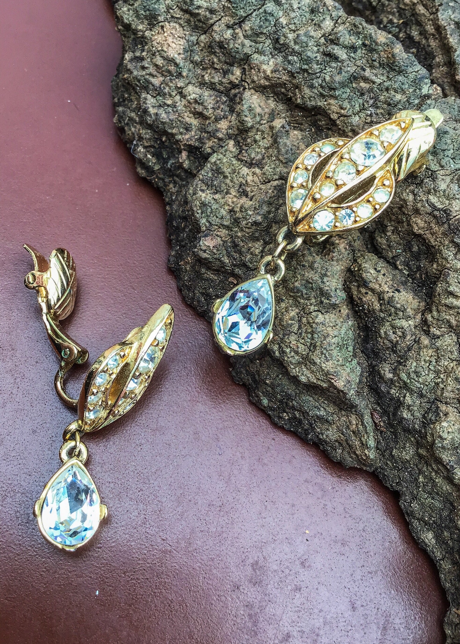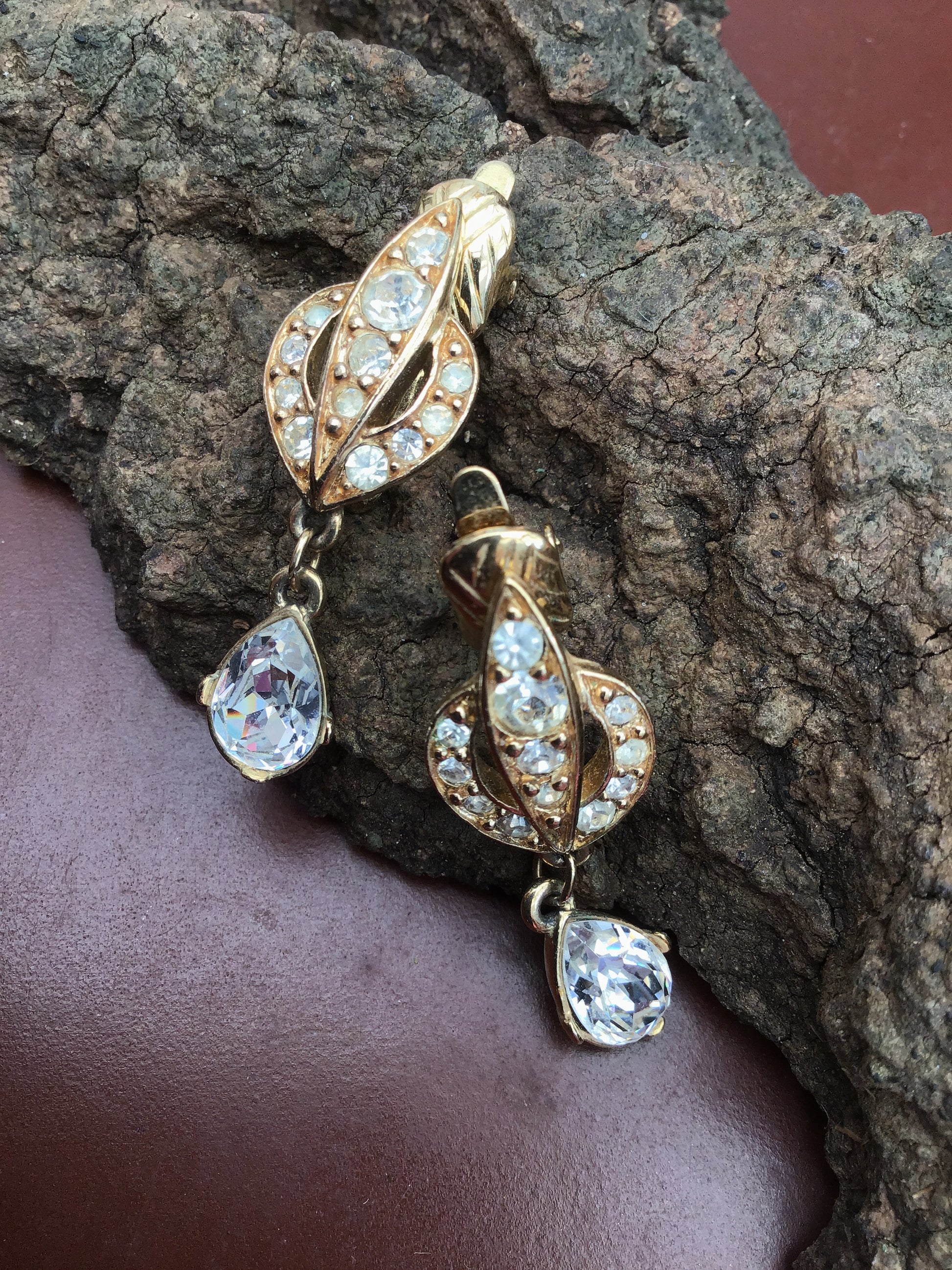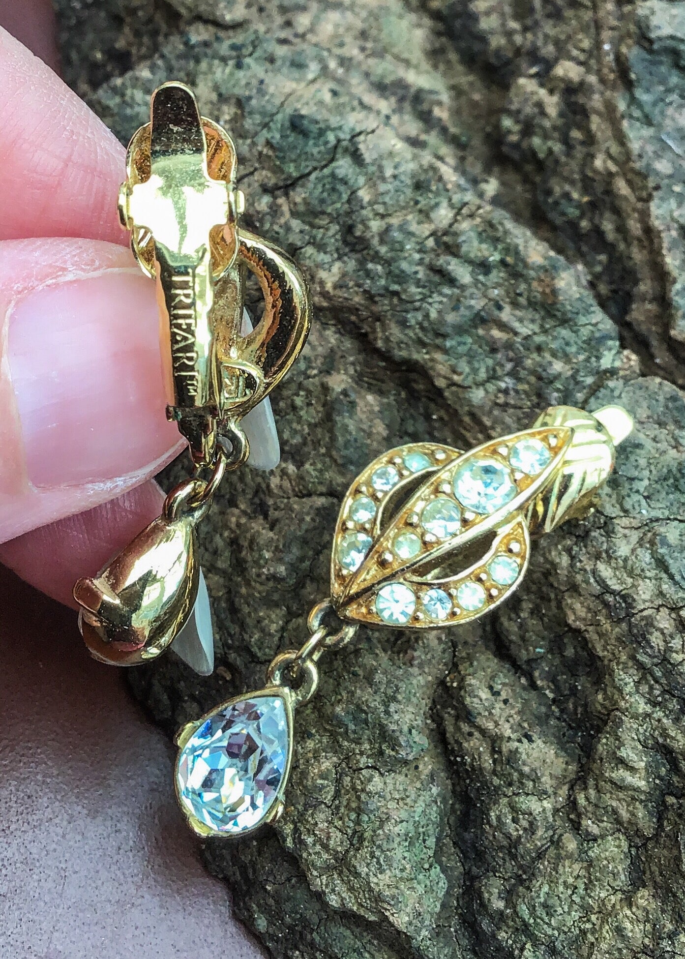 Stunning Vintage Trifari Crystal Dangle Clip On Earrings.