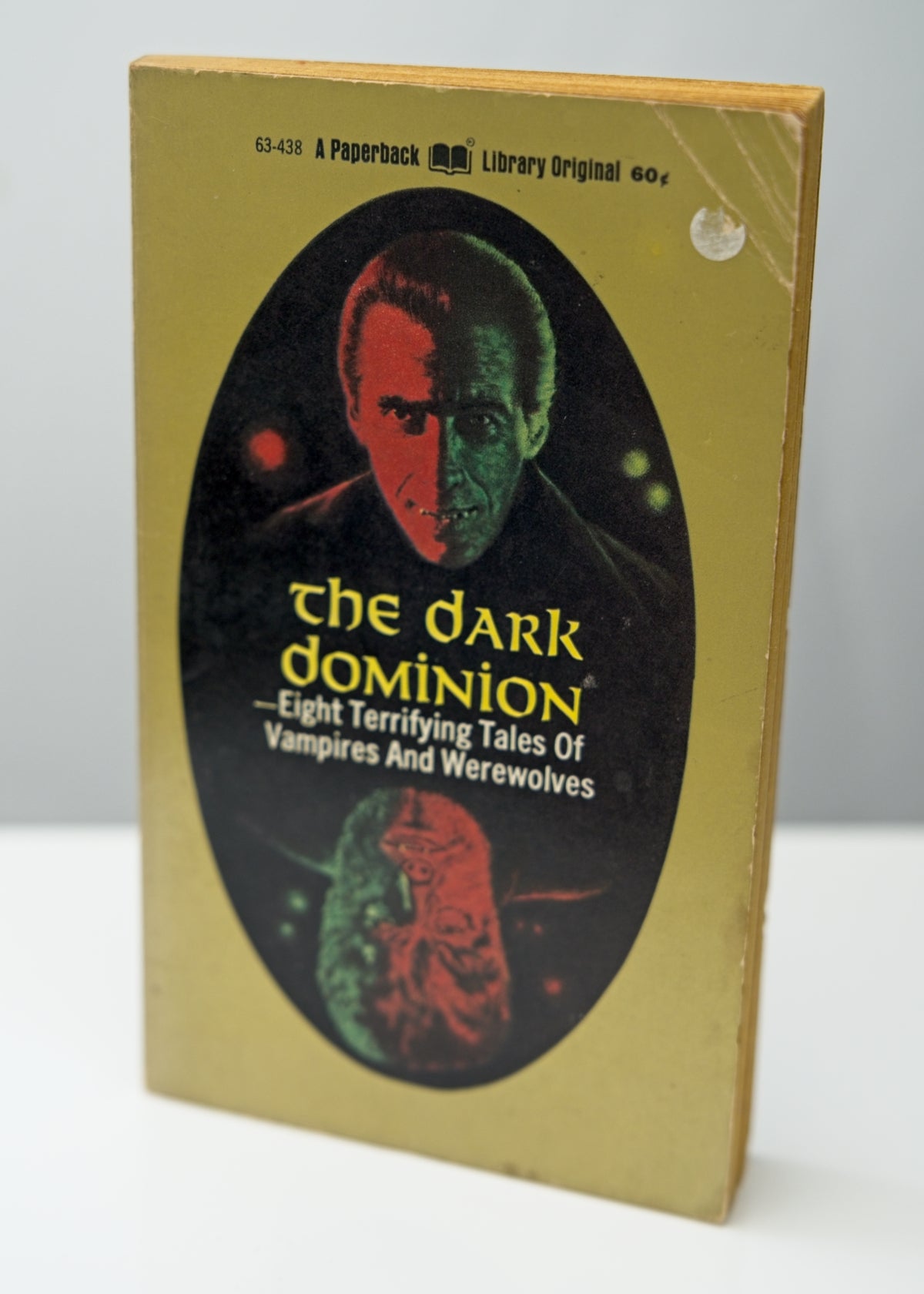 - A used secondhand vintage horror paperback.