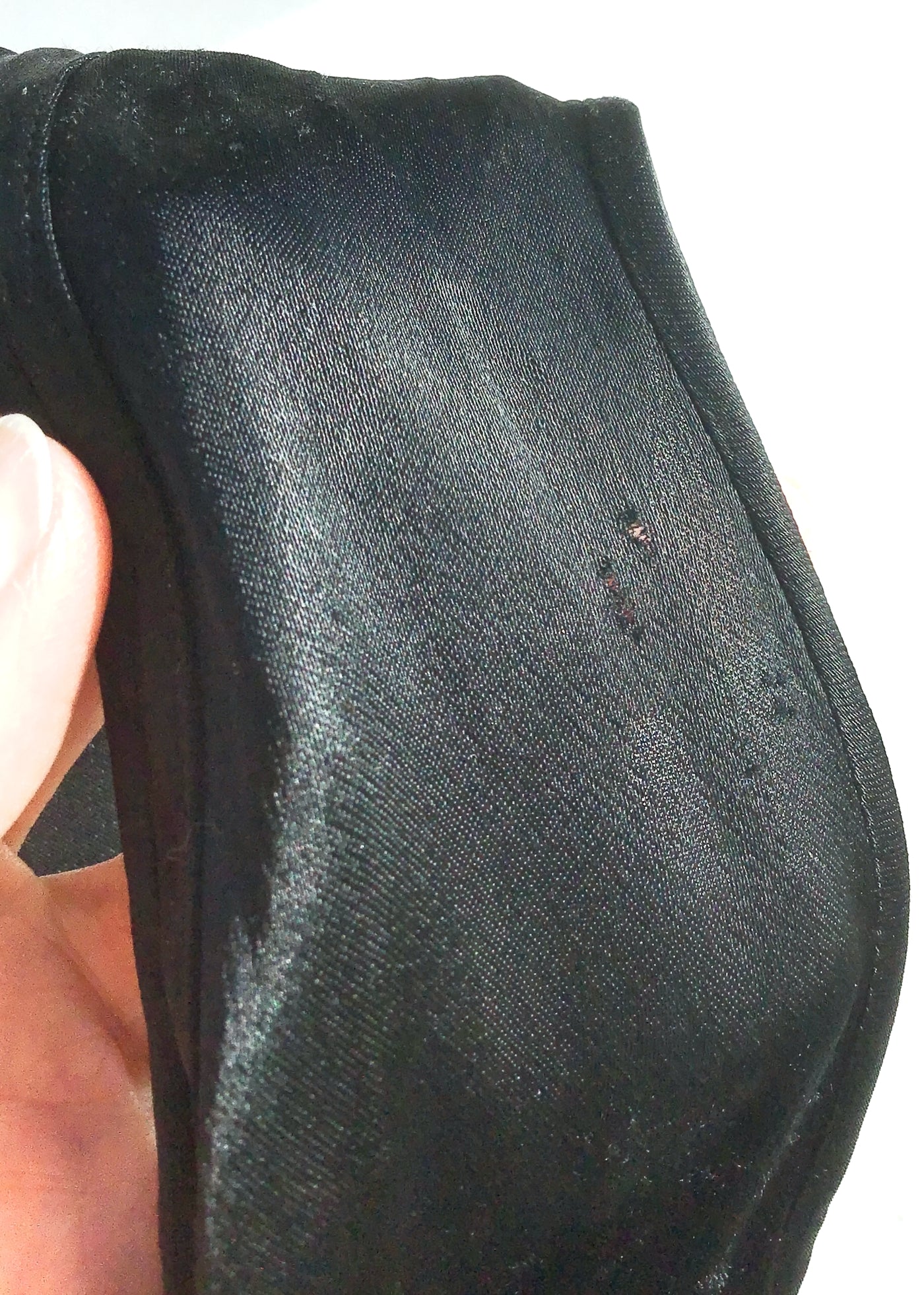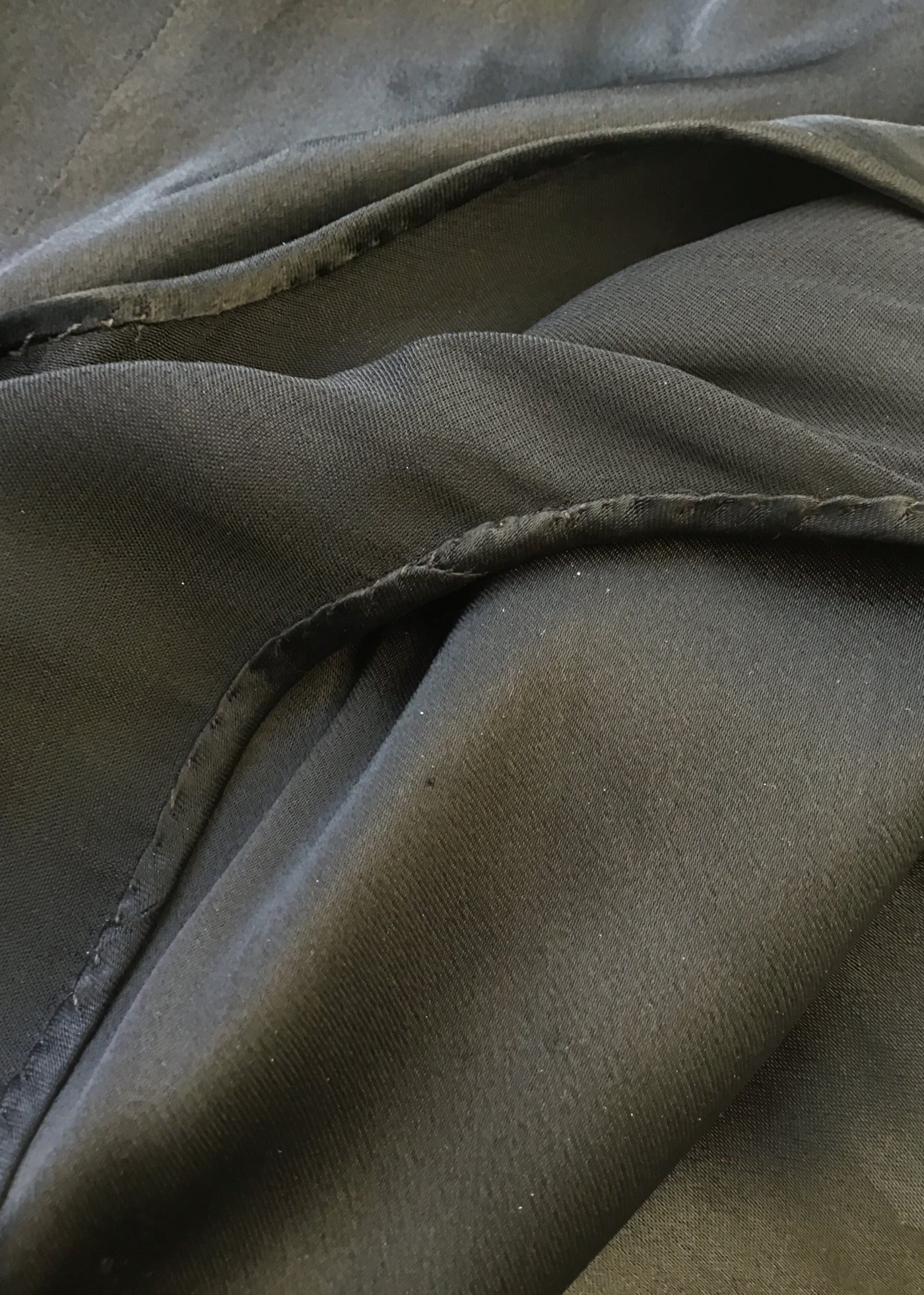 Oh my lordy lord this antique 1920s black satin sleeveless shift dress is an absolute stunner. The fabric is liquid satin is so slinky. An haute couture hand stitched garment by the designer/maker Mme Jusseanne of La Rochelle, sometime between the turn of the century to 1930s.