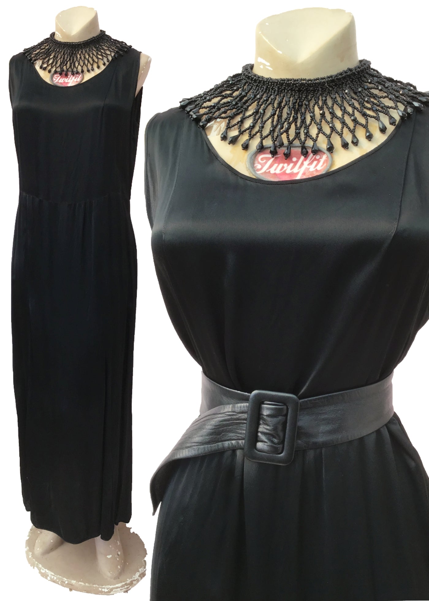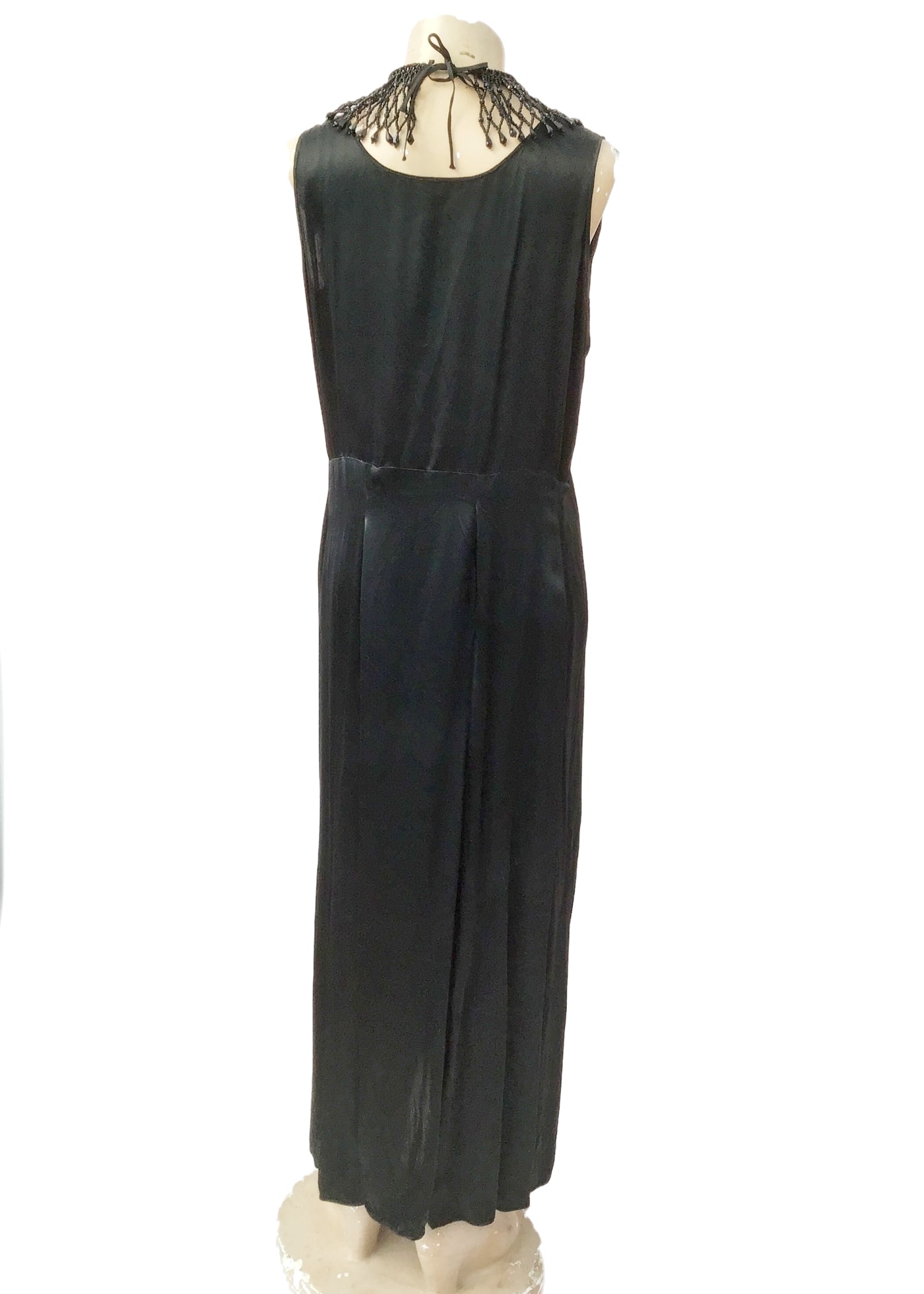 Vintage 20s Black Liquid Satin Sleeveless Dress • Haute couture Mme Jusseanne