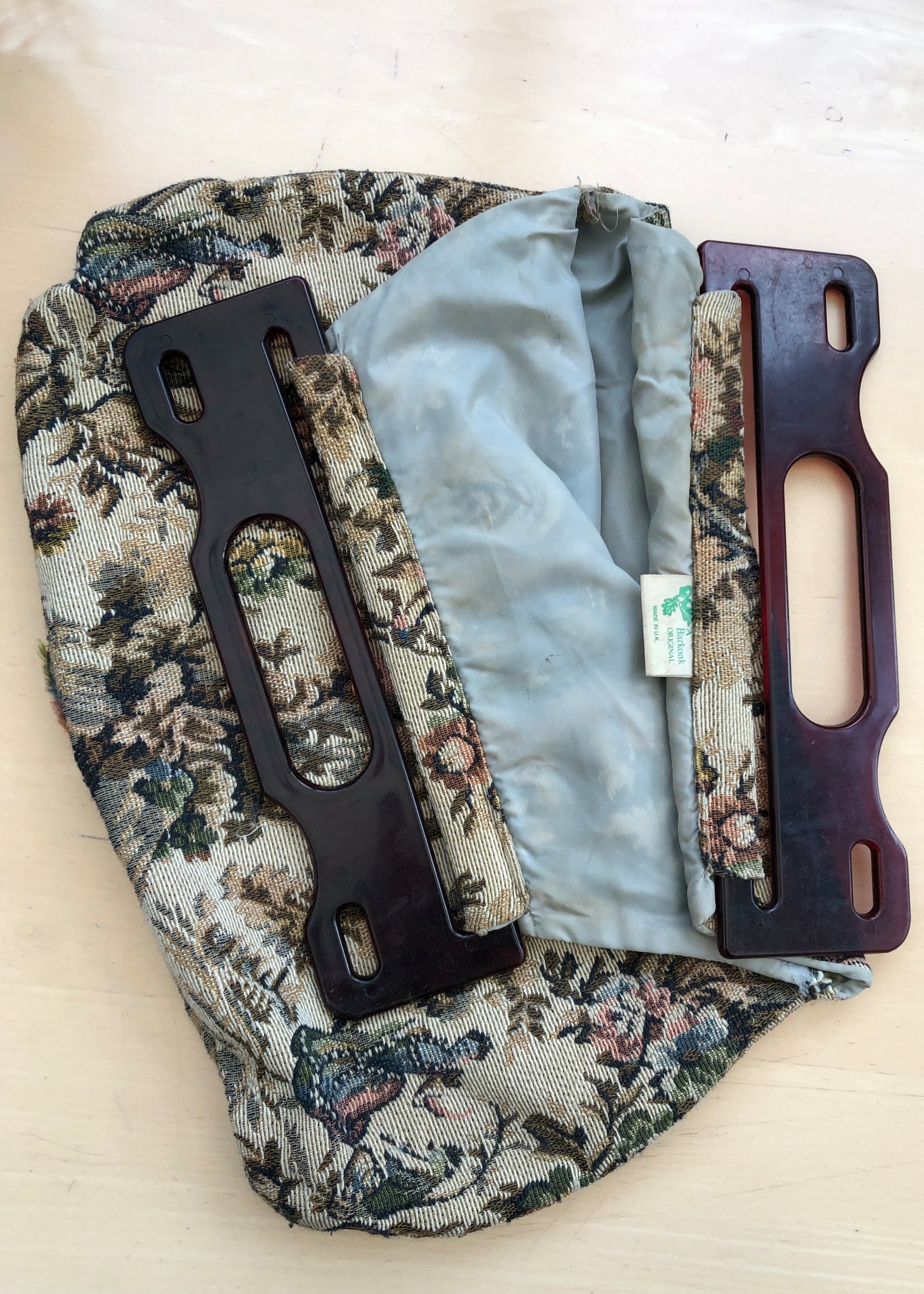 Vintage 70s Tapestry Knitting Bag Workbag • Plastic Handles