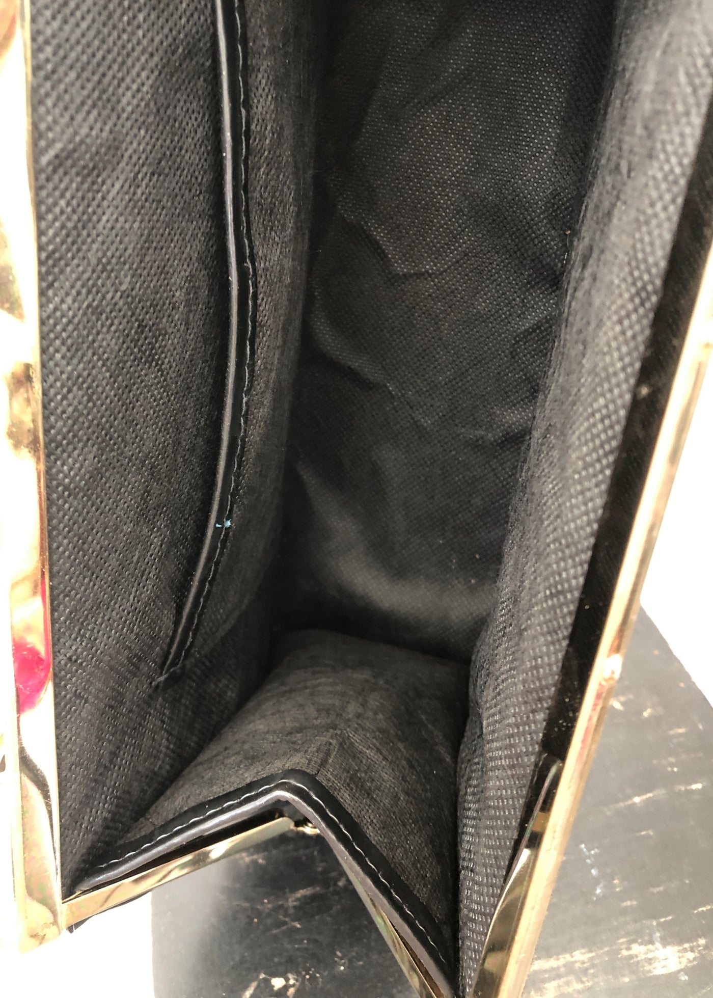 • Gold tone metal handle and sturdy metal frame
