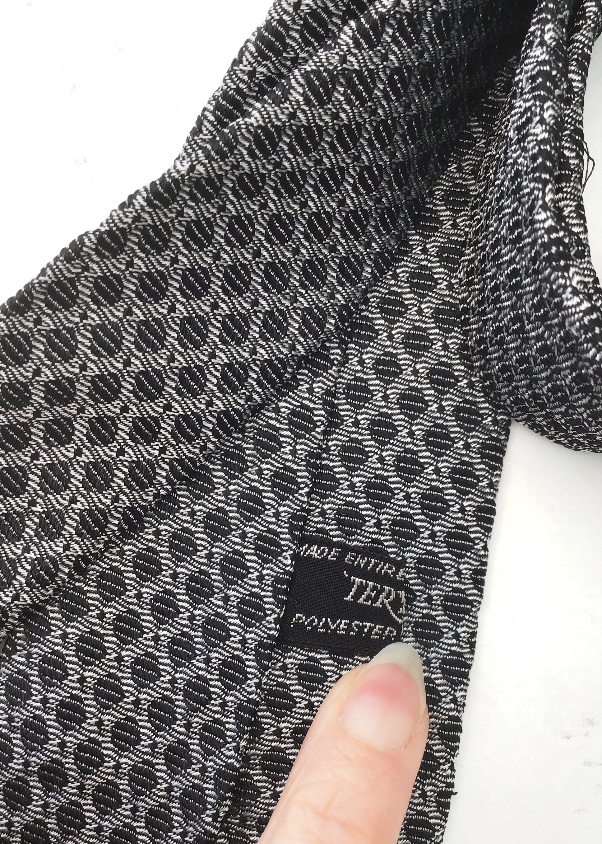 Funky men's vintage 60s textured terylene silver grey patterned 'Slim Jim' skinny neck tie.