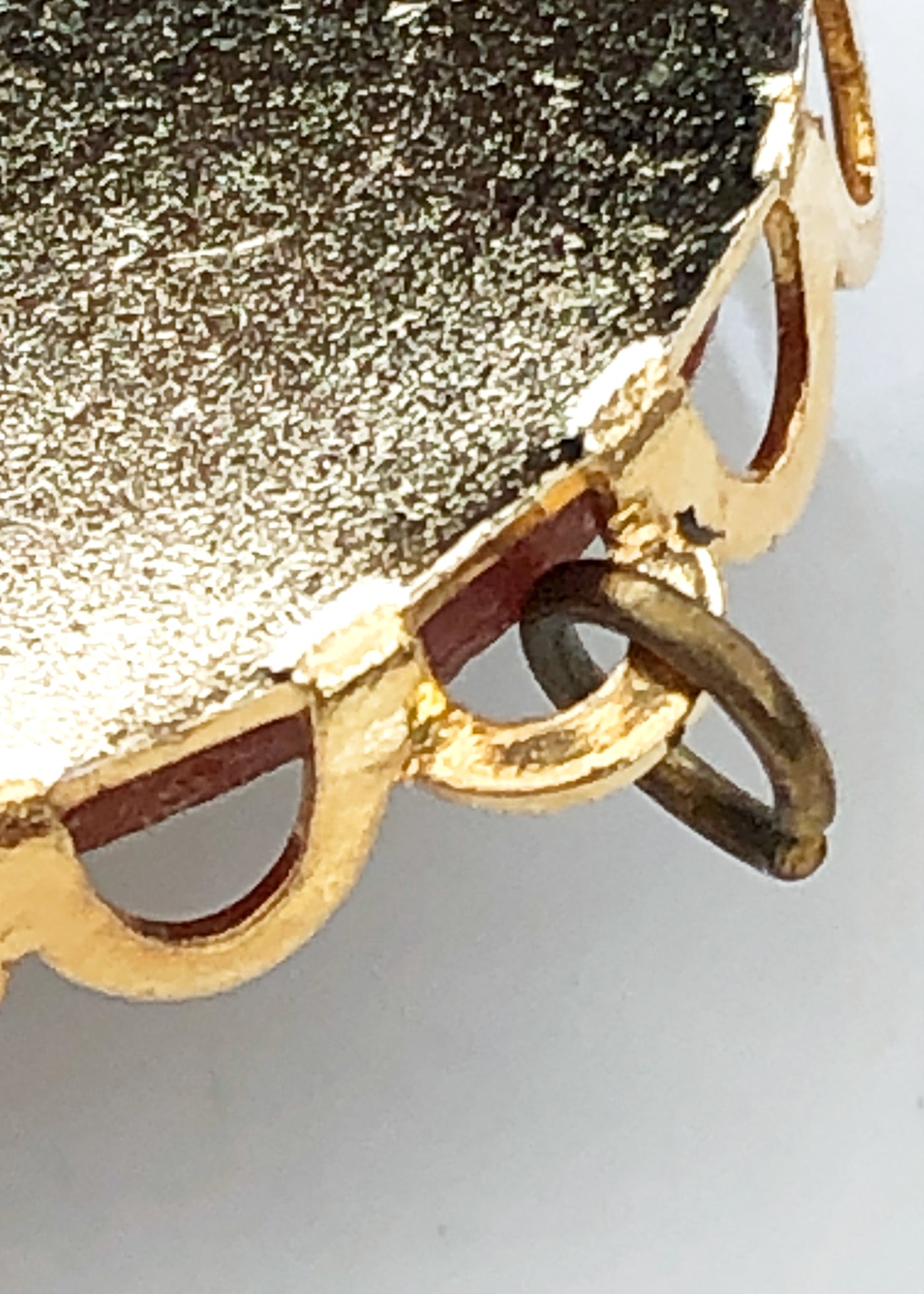 Sweet vintage 60s/70 cameo pendant featuring a floral display, made from moulded celluloid plastic mounted onto a lightweight gold-tone metal base. There is also a loop to thread a thin chain or wear with a ribbon threaded through to wear as a choker in a very Regencycore style.