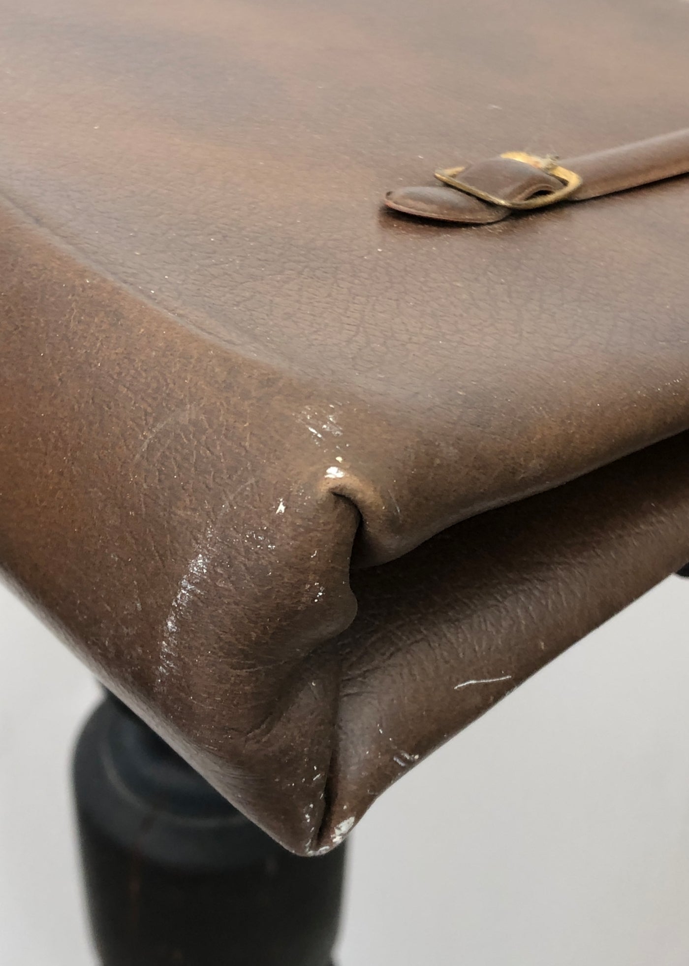 • Brown faux leather vinyl.