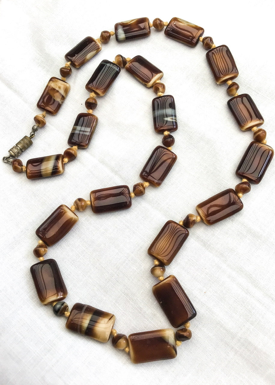 Vintage Caramel Banded Agate Lozenge Bead Necklace