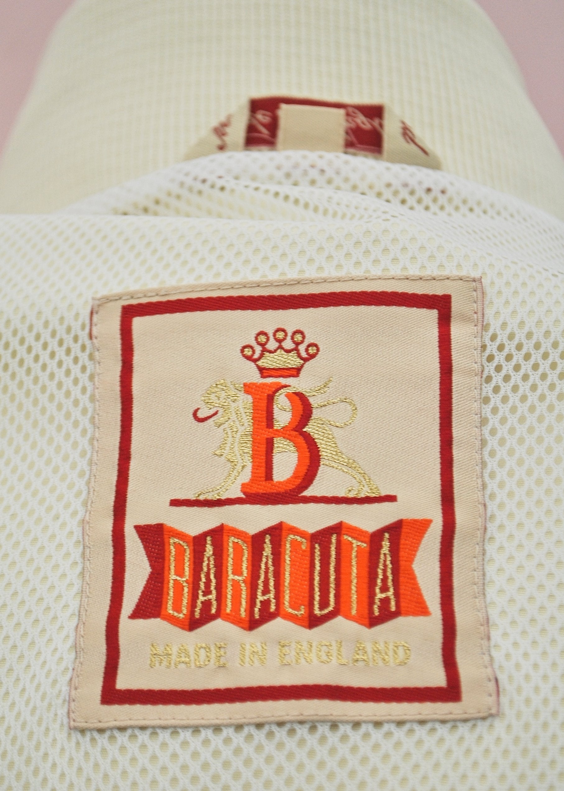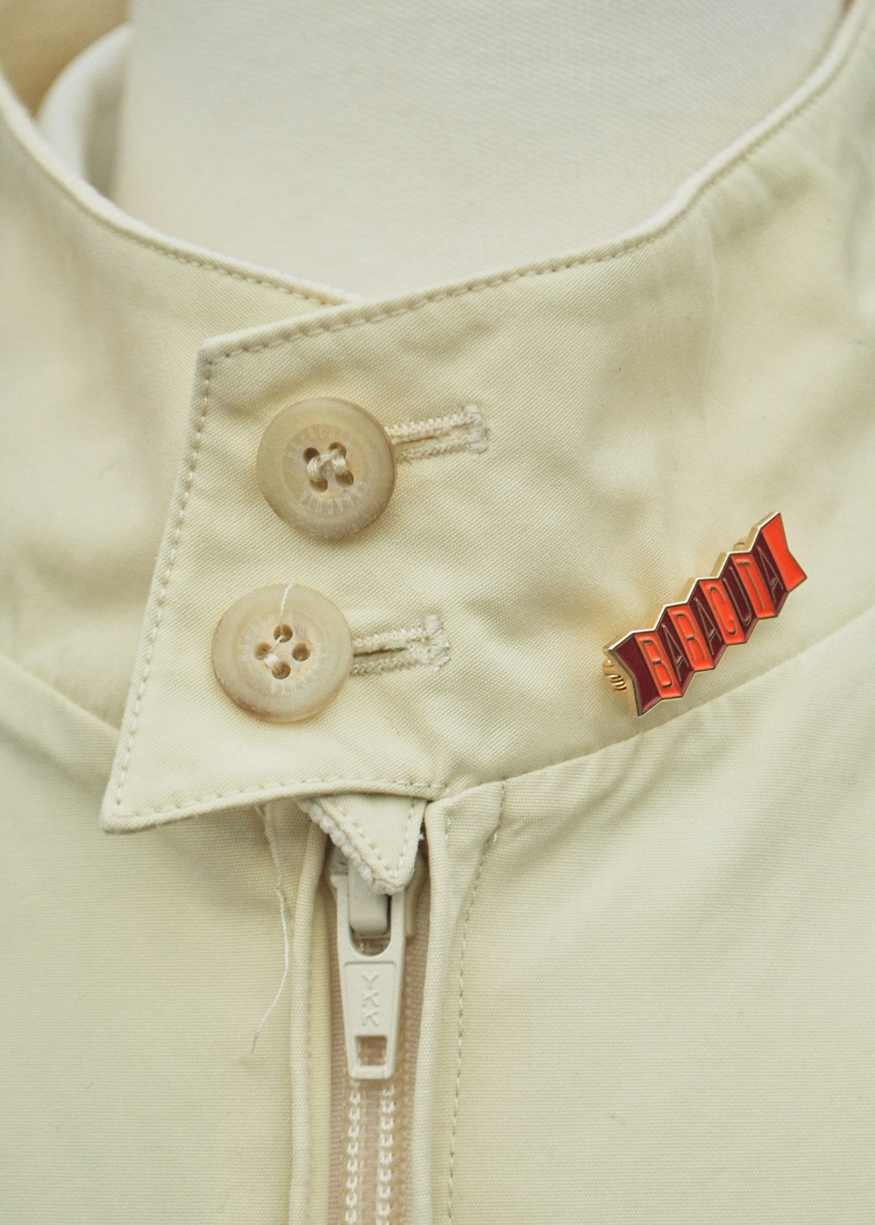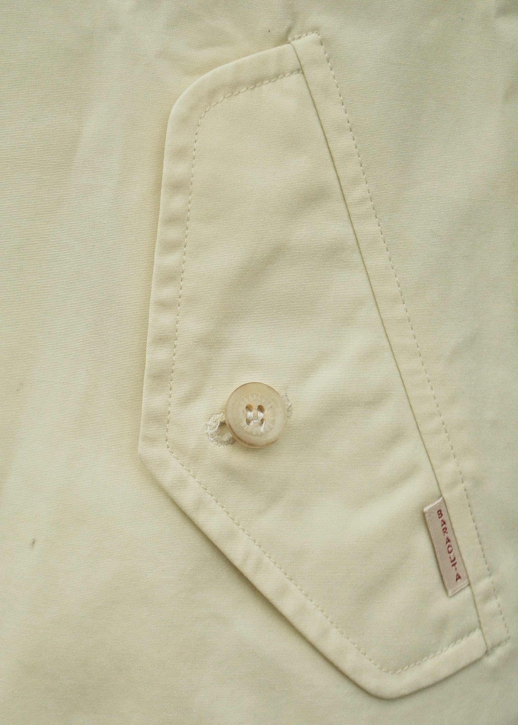 Rare Vintage genune Baracuta G-9 Harrington Jacket in pristine condition Cream colour with a lightweight white aireated lining. High crew collar fastens with 2 buttons, complete with baracuta enamel badge.